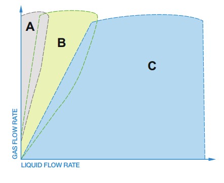 Designed to separate liquid and solid contaminants from a gas dominant flow with moderate to high liquids. - REGION C